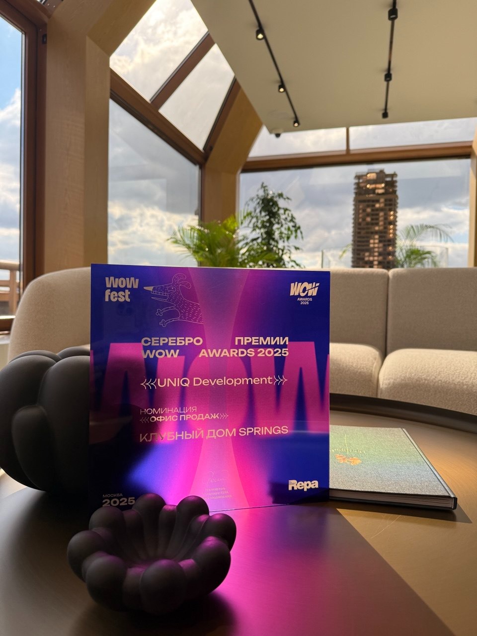 11 сентября в Москве прошла церемония награждения премии WOW Awards 2025. Команда UNIQ Development получила сразу два «серебра» в номинациях «Офис продаж» и «Наружная реклама: статика».